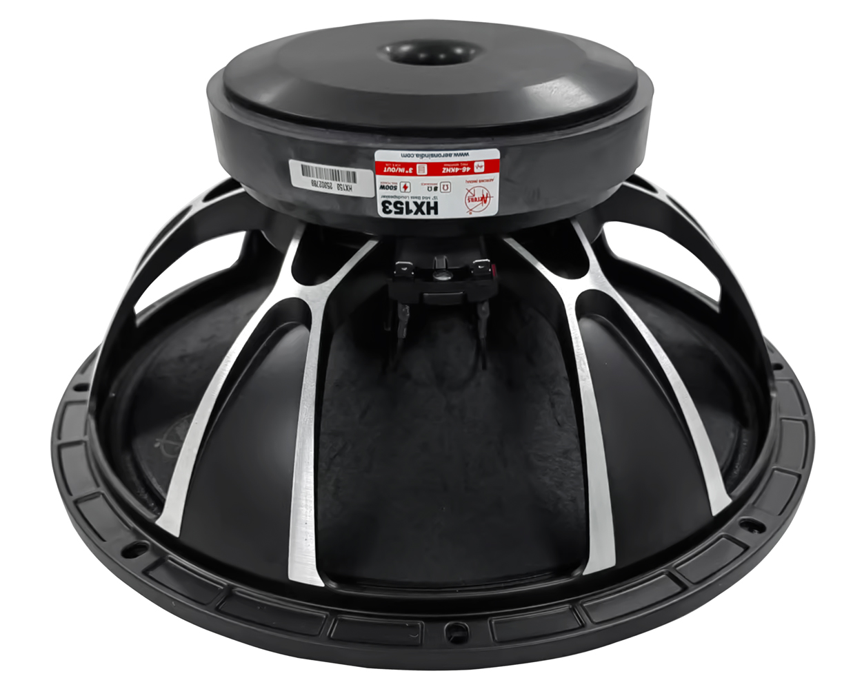 The AERONS HX153 is a premium 15-inch mid driver engineered for clean, accurate and expressive mid-range performance. Designed with an exclusive heavy-duty chassis, it offers long-term reliability for professional PA applications. Delivering 500W RMS power and a wide 46Hz–4kHz frequency range, it ensures clear mids and natural, detailed vocals. The 3-inch in/out voice coil provides excellent heat management and stable operation, while the 8-ohm impedance ensures easy amplifier compatibility. The HX153 is an ideal choice for users who want smooth, focused mids and superior vocal clarity in their sound systems.